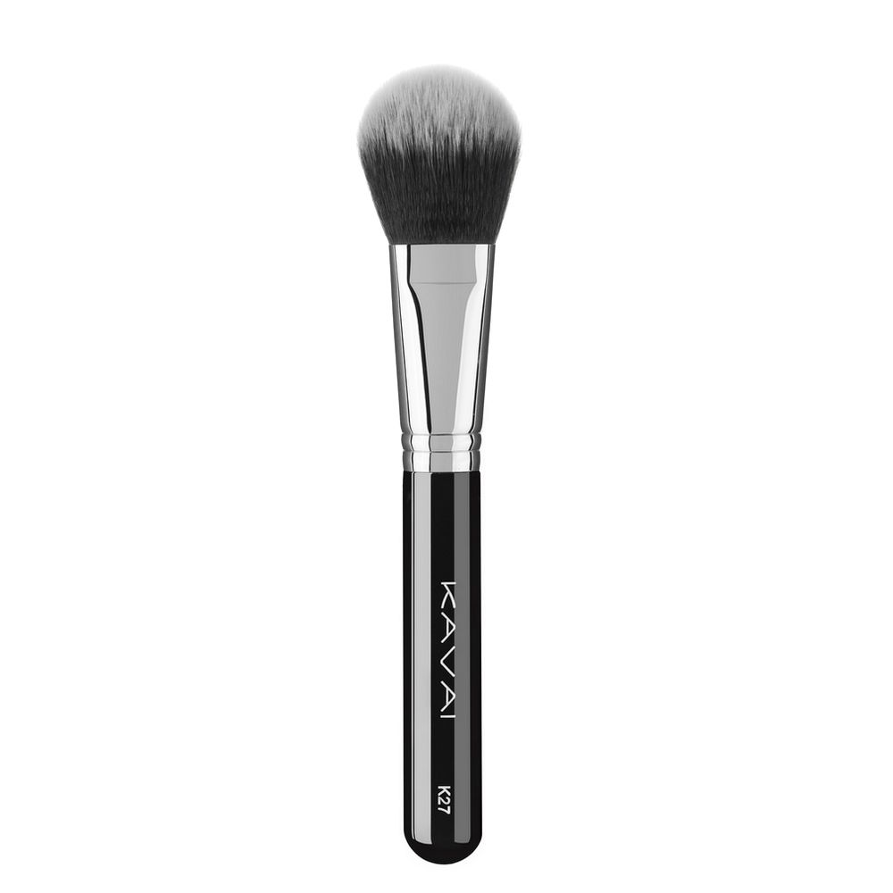 Pędzel podobny do pędzla K26, ale posiada spłaszczoną skuwkę. Przeznaczony do nakładania pudru, różu i bronzera o konsystencji proszku lub kamienia. Sprawdza się w aplikacji wszelkich kosmetyków sypkich, prasowanych, w kamieniu. Bardzo miękkie włosie idealnie przylega do twarzy co ułatwia wykonanie perfekcyjnego makijażu i precyzyjnie wymodeluje kontury twarzy. Pędzel został wykonany z wysokiej jakości dwukolorowego taklonu (syntetycznego włosia wegańskiego). Skuwka srebrna miedziana, rączka czarna drewniana. Dbałość o detale i solidne wykonanie sprawia, że pędzel nie gubi włosia, jest elegancki i łatwy w utrzymaniu czystości.